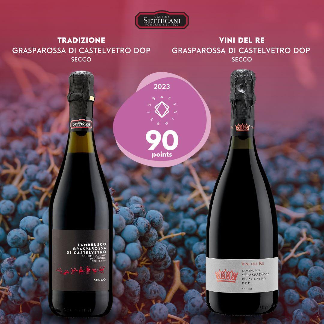 5StarWines - the Book è la guida ufficiale che raccoglie i vini partecipanti alla prestigiosa selezione - quest’anno sono stati oltre 2200 i campioni inviati - che hanno ottenuto un punteggio pari o superiore a 90 centesimi. Per la settima edizione sono stati inseriti 733 vini e, tra questi, non mancano anche i nostri di Settecani! In particolare, sono stati il Lambrusco Grasparossa di Castelvetro DOP frizzante Tradizione e il Lambrusco Grasparossa di Castelvetro DOP frizzante Vini del Re a ottenere i 90 punti nella “lista dei vini selezionati per la Guida 5StarWines - The Book 2024”. Presentata nell’ambito di Vinitaly 2023, la selezione internazionale riconosce e premia la qualità dei vini e delle aziende che li producono attraverso il giudizio oggettivo di un panel di esperti.