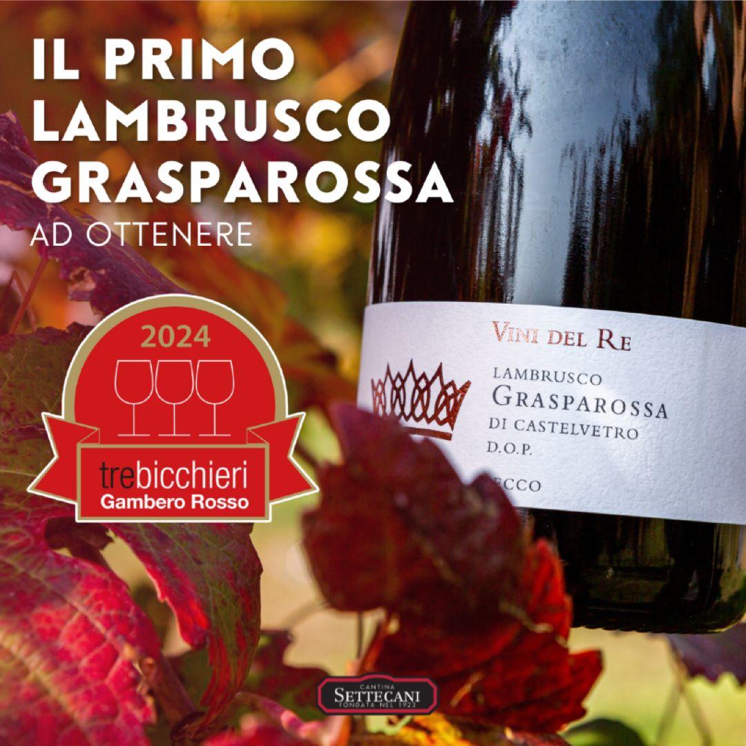 Prima volta per la varietà DOP Lambrusco Grasparossa e prima volta per Cantina Settecani: il nostro Lambrusco Grasparossa di Castelvetro DOP Secco 2022 - Vini del Re si aggiudica i Tre Bicchieri della Guida Vini d’Italia del Gambero Rosso.