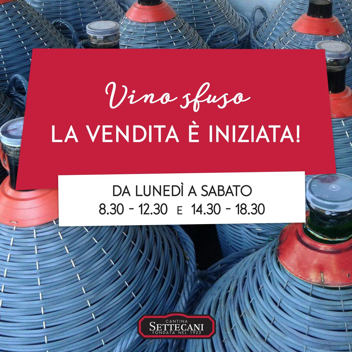 Da venerdi' 17 gennaio 2025 inizierà la vendita del vino sfuso in damigiana